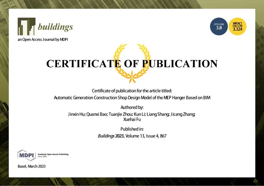 華固三維自動(dòng)化支吊架設(shè)計(jì)軟件研發(fā)成果登陸國(guó)際建筑期刊Buildings